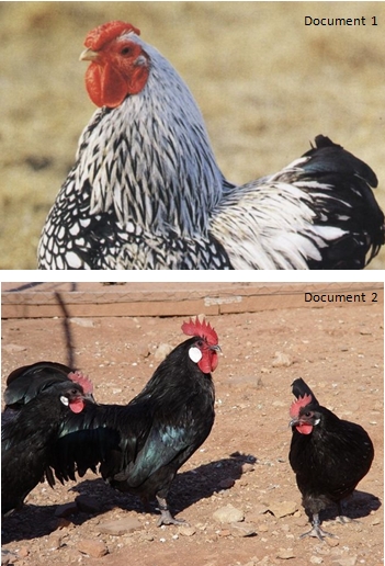 Chez le poulet, plusieurs mutations ont été mises en évidence. Parmi celles-ci, la mutation crête rosacée (ou crête « en rose ») est à l'origine d'une crête dont la forme rappelle celle d'une rose (document 1).