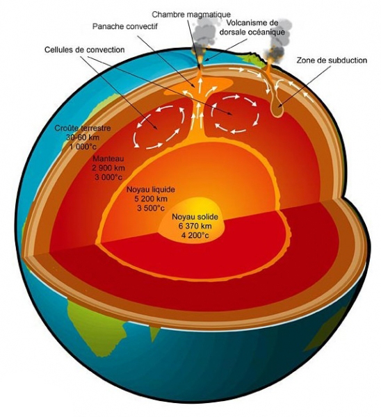 La chaleur dégagée par notre globe est la désintégration de la radioactivité de ces roches (90%) et, dans une moindre mesure, le refroidissement du noyau. La surface de la Terre est également réchauffée par l'énergie du soleil, mais elle permet de réchauffer seulement les premiers mètres du sous-sol.