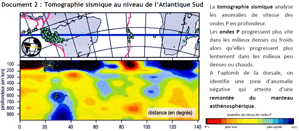 La tomographie sismique est l'étude des ondes sismiques lors d'un tremblement de terre. Elle permet de repérer les changements de vitesse d'une onde et ainsi de déduire la température des couches traversées.