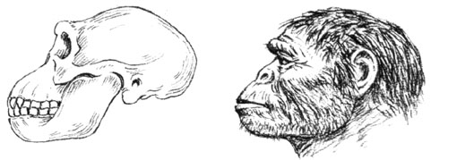 Homo habilis: Ce sont les homo les plus anciens, datés de 3 à 1.5 millions d'années, leur capacité crâniennes de 600 à 800cm3 traduit une augmentation du volume cérébral. La taille reste petite (environ 1m). La bipédie est quasi parfaite. Les fossiles sont parfois associés à un outillage de galets aménagés et de silex grossièrement taillés.