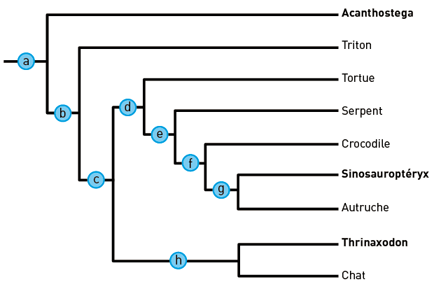 Les relations de parenté entre les vertébrés permettent de construire un arbre de parenté ou arbre phylogénétique. Dans un tel arbre, chaque nœud représente un ancêtre commun hypothétique dont on peut préciser néanmoins les caractéristiques. Entre chaque nœud on retrouve une ou plusieurs innovations évolutives c.a.d la modification d’un caractère primitif vers un caractère dérivé.
