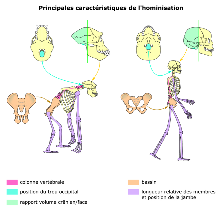 La vie embryonnaire est plus développée chez l’Homme que chez le Chimpanzé, mais surtout des différences nettes se mettent en place pendant la vie foetale et après la naissance. Le trou occipital n’est que l’un de ces exemples.